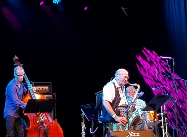 Bei weiteren Mitwirkenden – Idris Ackamoor, Pharoah Sanders, Philip Catherine – war mir nicht klar, wie das werden würde (bei Lovano auch nicht, zumal ich mir das Trio – es gibt eine ECM-CD, die ich nie kaufen mochte – schon auf dem Papier nicht einleuchten wollte, und leider nach dem Konzert auch nicht).