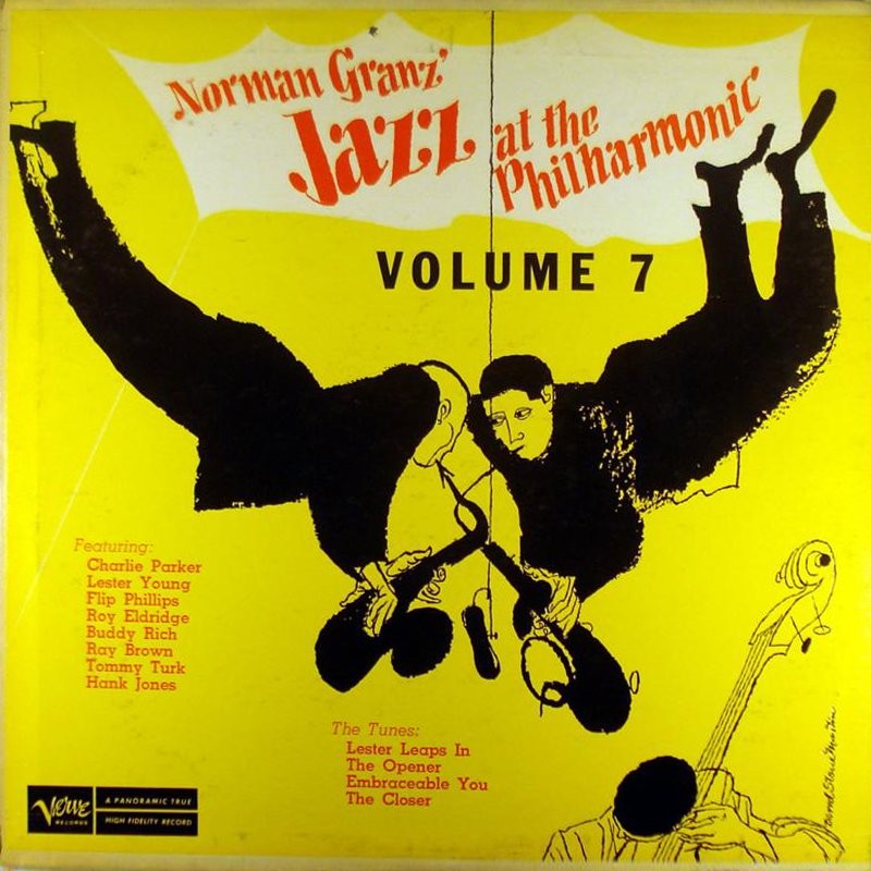 Danach ein Unterbruch, eine Lücke von fast exakt zwei Jahren. Weiter geht es, erneut in der Carnegie Hall zu New York, am 18. September 1949 mit dem letzten JATP-Mitschnitt der Vierzigerjahre, der auf Verve (bzw. Mercury, Clef, whatever) erschienen ist. Roy Eldridge, Tommy Turk (ein recht ungelenker Solist, für den Norman Granz sowas wie eine kleine Vorliebe gehabt zu haben scheint, zum Schaden einiger Parker-Aufnahmen), Charlie Parker, Phillips, Lester Young, Hank Jones, Ray Brown und Buddy Rich (Jo Jones ist schon sehr viel toller!) sind diesmal mit dabei – eine der berühmtesten JATP-Aufnahmen, und insgesamt wohl auch eine der besten, dank Parker und Young. Die Stücke sind: „The Opener“, „Lester Leaps In“, „Embraceable You“ und „The Closer“.